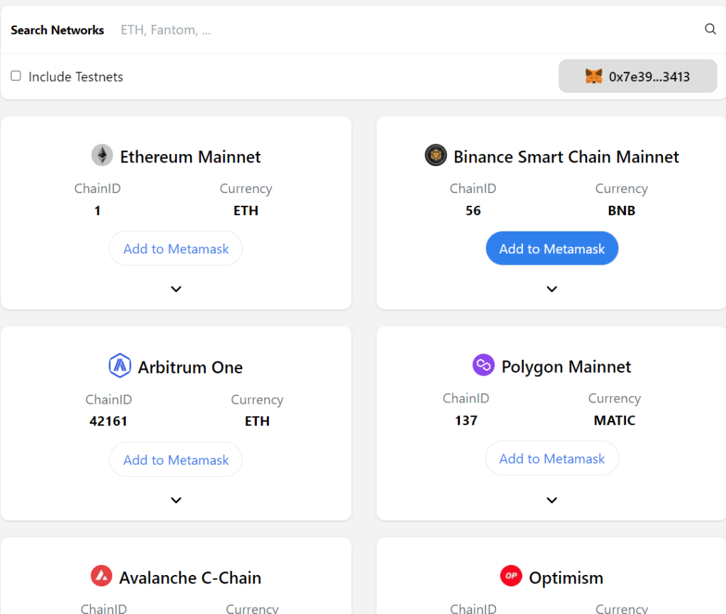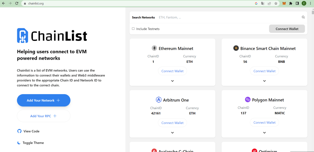 3- Ancak istediğiniz ağı burada bulamazsanız tam olarak bu iş için tasarlanmış olan chainlist.org sitesi de var. Burada karşımıza tüm ağların listesi çıkacak.