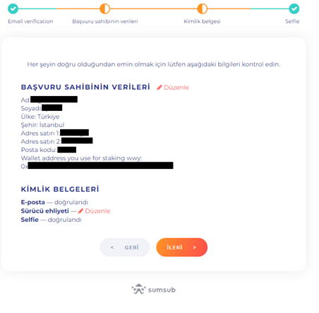 11) Birkaç dakika içinde sonuçlanarak buna dönüşüyor. Tebrikler, kimlik doğrulama (KYC) işleminiz tamam. Artık WePad ön satışları için tek yapmanız gereken staking işlemini halletmek.